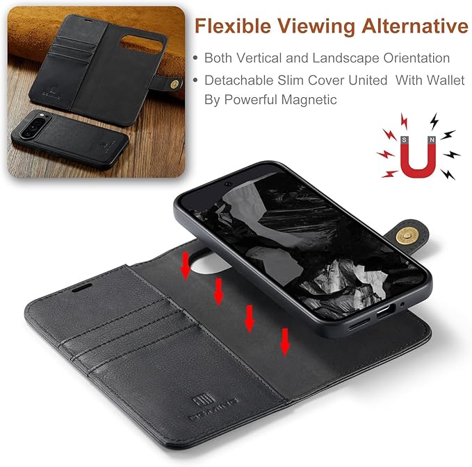 【マグネット分離設計】このスマホケース グーグルピクセル10 / 10Pro とマネークリップの2in1タイプで、強力マグネットで着脱可能。その日の気分やシチュエーションに合わせて使い分けることができます。【カード収納機能付】このスマホケースは、カード収納機能を備えており、クレジットカードやICカード、定期券などを簡単に収納できます。日常生活や通勤時に便利で、財布を持ち歩かなくても、スマホと一緒に必要なカードを携帯できます。【上質のレザー】 高品質のPUレザーを使用しており、柔らかく手触りが良いだけでなく、長時間の使用でも色落ちや劣化を防ぎ、天然皮革のような高級感と柔らかさを持ちながら、耐久性にも優れています。インナーケースは柔らかいソフトTPU素材を採用して、スマートフォンに完全にフィットするように設計されています。【横置きスタンド機能】裏面を折り曲げると横置きスタンドになり、動画視聴やビデオ通話時に便利です。手を使わずに画面をサポートしてくれるので、快適なエンターテインメント体験ができます。また、スピーカーホールも備えており、ケースを閉じたままでも通話が可能です。【精巧な細工】携帯のサイズに従って精密に設計され、装着時も電源ボタン、音量ボタン、充電ポートなどすべての操作が快適に行えます。また、ディスプレイやカメラレンズを保護するために、フチを高く設計しており、カメラレンズへのスレ傷を防止します。