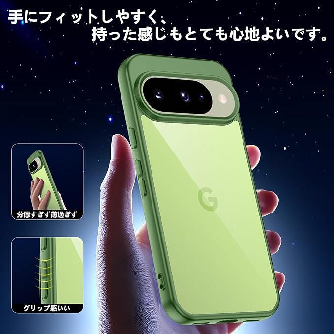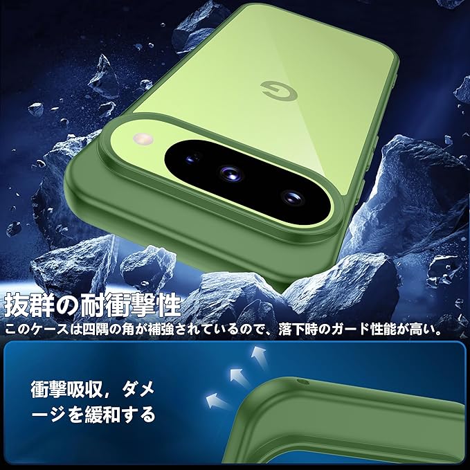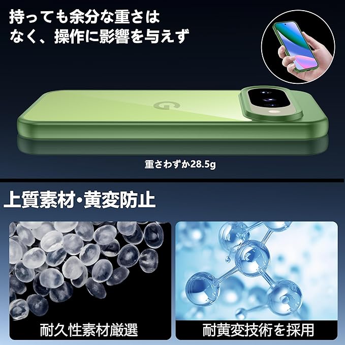 Google Pixel 10 / 10 pro用ケース グリーン 黄変防止 グーグルピクセル10/10pro専用 耐衝撃 ガラスフイルム保護付き 指紋防止 落下防止 耐久性 ストラップホール付 薄型 軽量 ソフトカバー ワイヤレス充電対応 googleピクセル10/10プロ用 gogogo