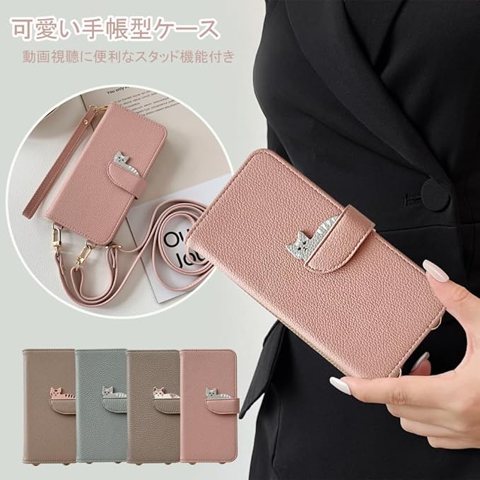 対応 Google Pixel 10 ケース 手帳型 ショルダー おしゃれ Pixel 10 pro スマホケース 可愛い 猫柄 ねこ ストラップ 肩掛け グーグル ピクセル 10/10プロ ケース 手帳型 Pixel 10 スマホカバー 斜めがけ カード収納 スタンド機能 マグネット式 高級PU 肌感レザー 手作り 小銭入れ エレガント