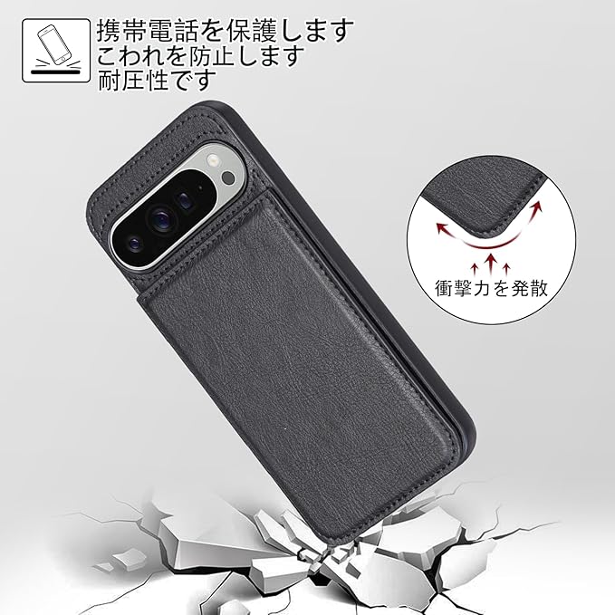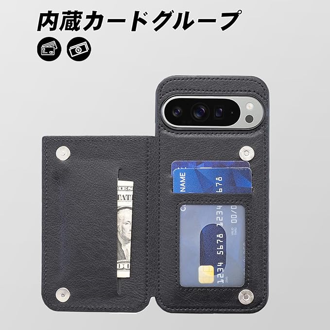 Cafma 対応GOOGLE PIXEL 10 PRO XL ケース 背面 カードケース pixel10 pro xl 携帯 カバー 薄い 手帳型 ケース グーグル ピクセル10pro xl 携帯 ケース 手帳型 耐衝撃 軽量 スタンド機能 背面 IC カード入れ 手帳型 財布型 カバー(ブラック)グーグル Pixel10 ProXL Black