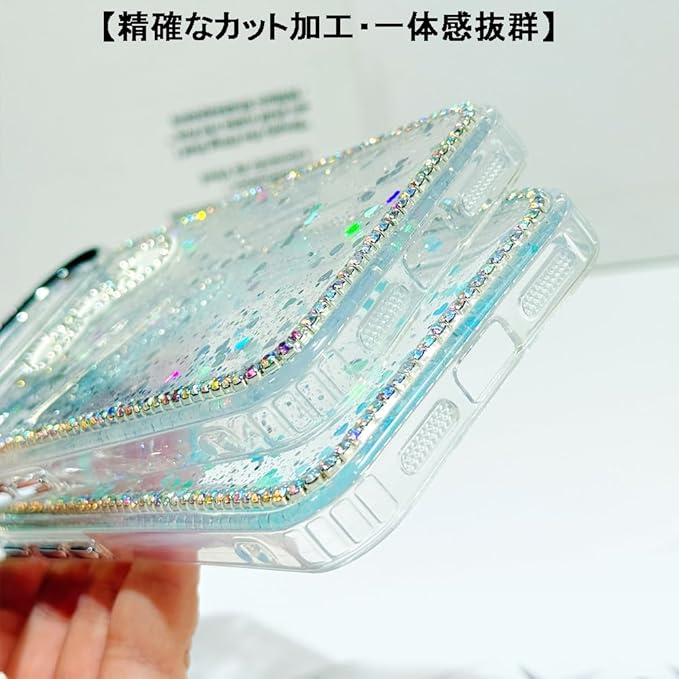 YUYIB スマホケース 対応 クリアケース 透明 キラキラ ドリル フラッシュ リボン ハート かわいい TPU 傷防止背面 滑り止め 衝撃吸収 おもしろい キャラクター ストラップ穴 携帯電話カバー