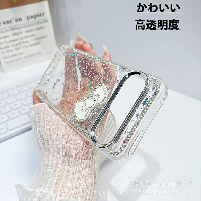 [YUYIB] スマホケース 対応 Google Pixel 9 / 9Pro / 10 / 10Pro 兼用 クリアケース 透明 キラキラ ドリル フラッシュ リボン ハート かわいい TPU 傷防止背面 滑り止め 衝撃吸収 おもしろい キャラクター ストラップ穴 グルピクセル10 Pro 携帯電話カバー (ホワイト, Pixel 9/9Pro/10/10Pro)
