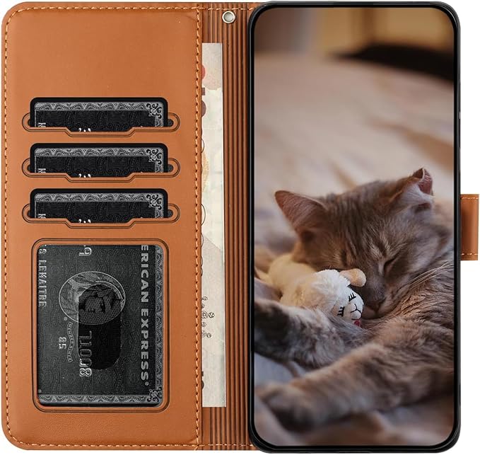 に適合するGoogle Pixel 10/向けのPixel 10 Pro ケース 手帳型 向けのピクセル10 カバー手帳型 内蔵マグネット軽量 耐衝撃 用のピクセル10pro スマホケース 桜の下の猫 用のPixel 10pro カード収納 スタンド機能 収納 財布型 人気 高級PUレザー 横置き機能き薄型 マグネット式 に適合するpixel 10 ケース -ブラウン