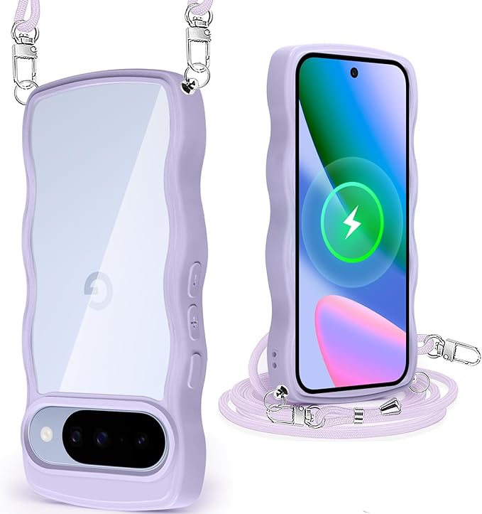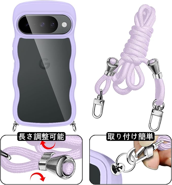 Google Pixel 10 / Pixel 10 Pro 用 ケース クリア ショルダー グーグル ピクセル 10/10Pro カバー 透明 かわいい 耐衝撃 スマホケース ストラップ付き 取り外し可能 長さ調整可能 首かけ 肩掛け 薄型 軽量 TPU ワイヤレス充電対応(パープル)