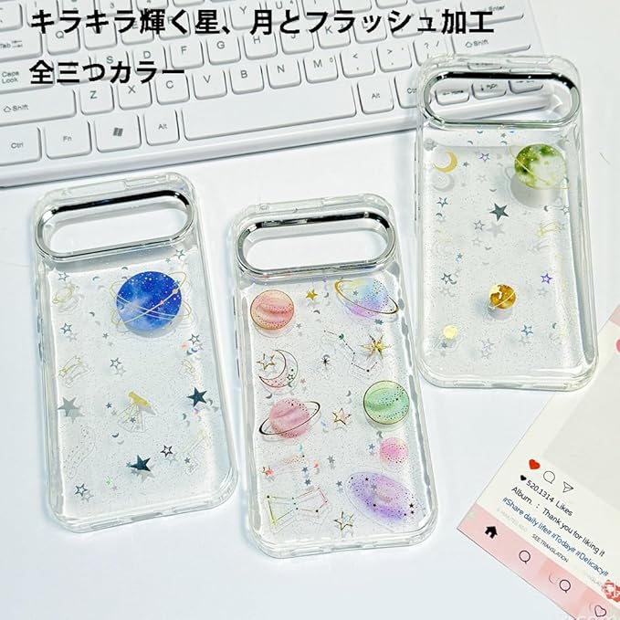 YUYIB スマホケース 対応 クリアケース 透明 キラキラ フラッシュ 星 月 星空 かわいい スフとTPU 傷防止背面 滑り止め 衝撃吸収 おもしろい キャラクター ストラップ穴 女性人気 携帯電話カバー
