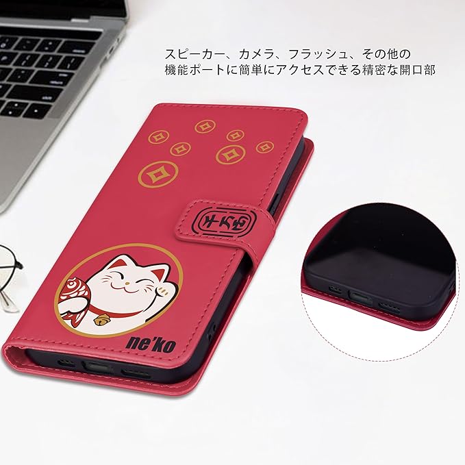 for Google Pixel 10/10 Pro ケース 手帳型 招き猫 Pixel 9/9 Pro ケース カード収納 グーグルピクセル10 スマホケース 耐衝撃 googleピクセル10 カバー 幸運な猫 PUレザー pixel 10 pro カバー 財布型 ピクセル9 スマホカバー スタンド機能 マグネット式 全面保護 ストラップ付き かわいい (レッド)