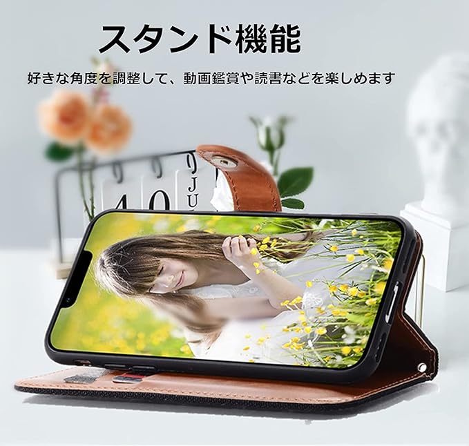 ★【高品質素材製】】高品質のデニム +優しい裏面(柔軟なTPUカバー)と組み合わせ、衝撃吸収機能あり、しっかりの二重保護でお携帯を守り抜きます。