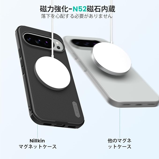 Nillkin Pixel 10/10 Pro 兼用ケース マット仕上げ Pixelsnap対応 ワイヤレス充電対応Qi2 マグネット吸着 google ピクセル10/10Proケース 耐衝撃 すり傷、汚れ、指紋防止 薄型 上質 ビジネスに最適(ブラック)