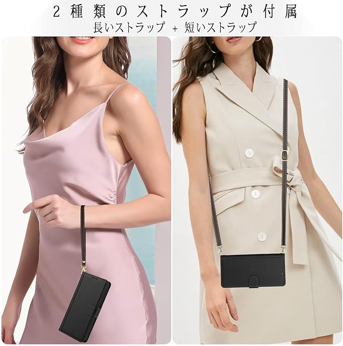 For Pixel10Proxl ケース 手帳型 ピクセル10プロXL ケース ショルダー カード収納 スマホケース 財布型 スタンド機能 カバー 肩掛け レザー ぐーくるぴくせる10pro XL 人気 女性 無地 シンプル 耐衝撃 全面保護 おしゃれ - ブラック