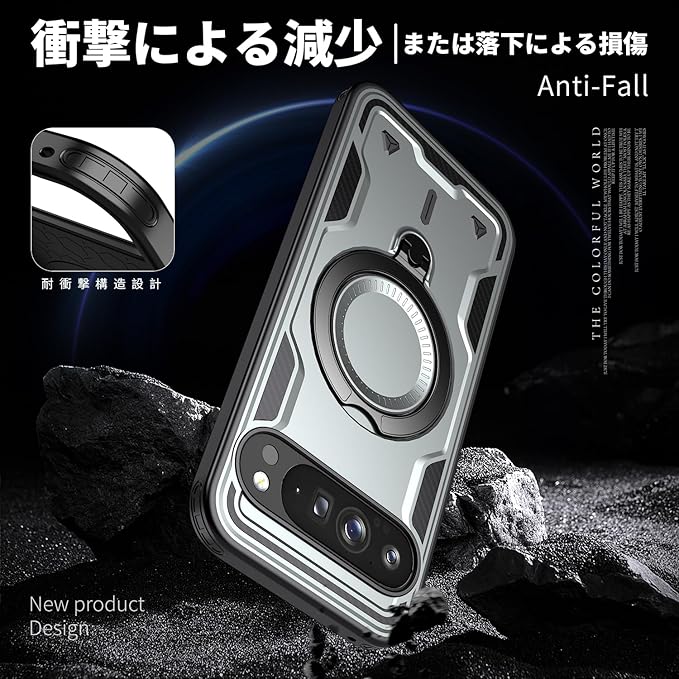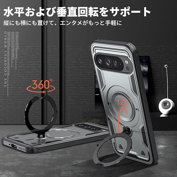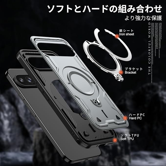 Google Pixel 10 Pro XL 用 ケース 耐衝撃 スタンド付き Magnetic対応 グーグルピクセル10Pro XL カバー リング TPU+PC ワイヤレス充電 米軍MIL規格取得 スタンド機能 (グレー)117-PX10PXL-07
