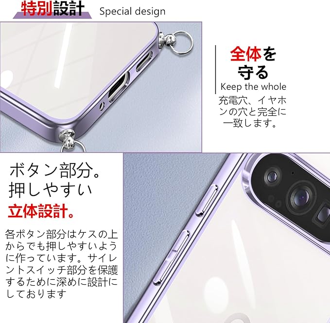 Google Pixel 10 Pro XL 用の ケース クリア ショルダー グーグル ピクセル10Pro xl スマホケース カバー 透明 TPU 薄型 肩掛け 首掛け 斜めかけケース 耐衝撃(ライトパープル)