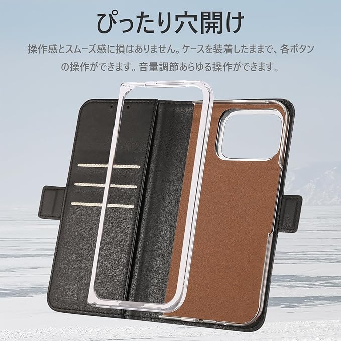 【PUレザー素材で風格と保護性能を両立】外側は高級感あるPUレザーを使用し、シンプルで落ち着いた風格を演出。内側は柔軟なPC素材でスマートフォンをしっかり固定するとともに、画面への接触によるキズを防止します。ビジネスからカジュアールまで、あらゆるシーンでご利用いただけます。(ご注意:PUレザー使用して、本革ではありません)