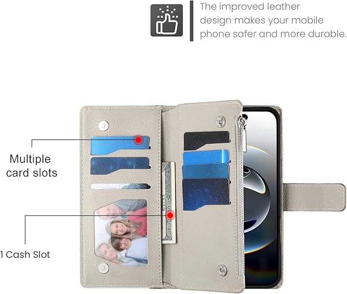【大容量&安心収納デザイン】 このpixel 10pro ケース/pixel 10 ケースは8カードスロット(内2つは透明ビジュアルウィンドウ付きでIDや写真をすぐ確認可能)+ 紙幣が収まるマチ付き収納層 + ファスナー付きコインポケットで、小銭も落ちる心配なし。スマホケースがそのままコンパクトな財布に。