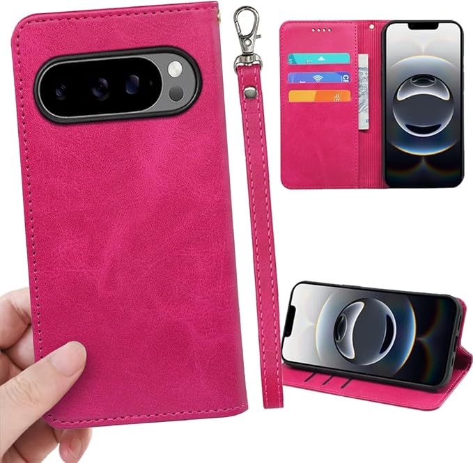 Pixel 10 / 10Pro 通用 ケース 手帳型 適用 【 Xungoujp ストラップ付き カード入れ 財布型 】 Google Pixel10 Pixel10Pro スマホケース 手帳 耐衝撃 グーグル ピクセル 10 case カバー PUレザー 内蔵マグネット 弱磁 ストラップホール スタンド機能 携帯カバー レトロ ローズレッド