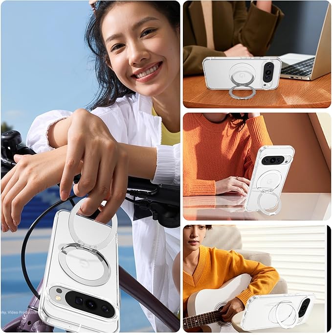 Telaso Google pixel 10 pro xl ケース MagSafe対応 マグネット搭載 スタンド機能 360 回転可能 pixel 10 pro xl ケース 透明耐衝撃 指紋防止 薄型 PC+TPU 車載ホルダー対応 ワイヤレス充電 全面保護 クリア