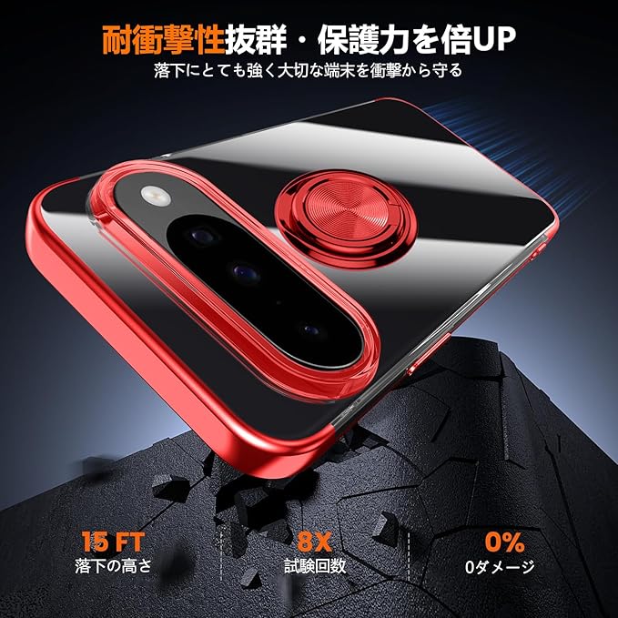 Google Pixel 10 用 ケース Pixel 10 Pro 用 ケース リング付き クリア 耐衝撃 スタンド機能 透明 TPU 車載ホルダー対応 落下防止 防塵 薄型 軽量 一体型 変形防止 保護カバー ピクセル 10/ピクセル 10 Pro 用 カバー 赤 W-YXZH-86-02