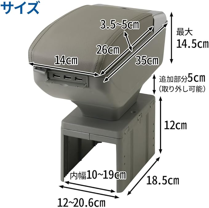 seathestars アームレスト 肘置き 車 軽自動車 普通車 後付け 汎用 コンソールボックス 収納 USB給電ポート付き ドリンクホルダー 肘掛け 幅調整可能 トレー付き 車内収納ボックス (ベージュ)