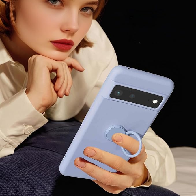for Google Pixel 6a ケース 液状シリカゲル親肌TPU新型携帯スタンド保護カバーカップル 放熱強純色極シンプル(Pixel 6aうすむらさき)