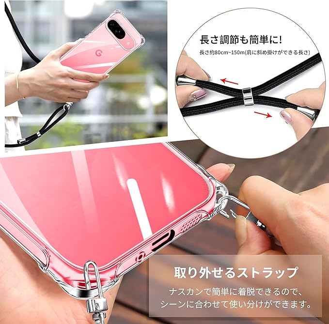 クリア Google Pixel 9 ケース/Pixel 9 Pro ケース ストラップ付き ショルダー 縄掛けケース 耐衝撃 ピクセル 9/9Proカバー 透明 薄型 軽量 TPU スマホケース 肩掛け 斜めかけ 紐付き 長さ調整可能 取り外し可能 落下防止 紛失防止 ワイヤレス充電対応 (クリア)