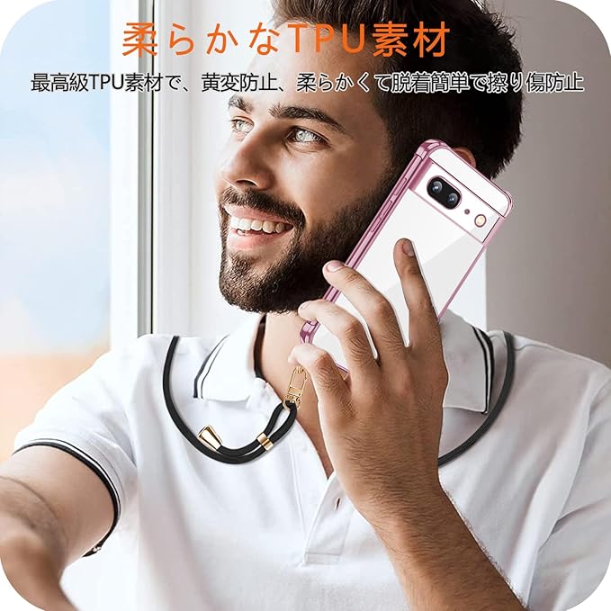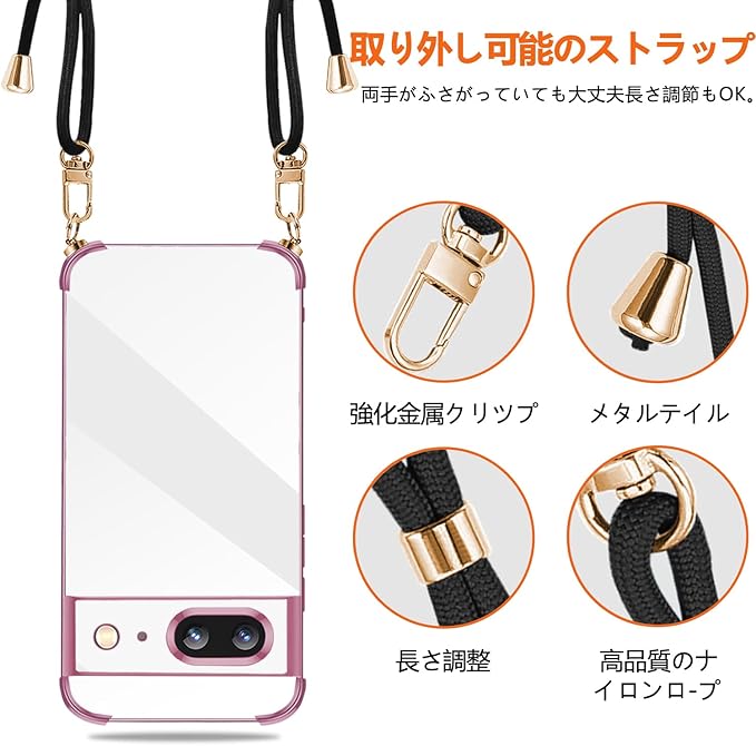 Google Pixel 9/Pixel 9 Pro ケース クリア ショルダー 新型韓国 可愛い 薄型 軽量 TPU バンパー メッキ加工 耐衝撃 Pixel 9/Pixel 9 カバー 首掛け 肩掛け 斜めかけ 縄掛けストラップ付き 1.5MM 取り外し調節可能なグーグルピクセル 9/9 Pro スマホケース 全面保護 落下防止 ワイヤレス充電対応【縄掛け-クリア 】