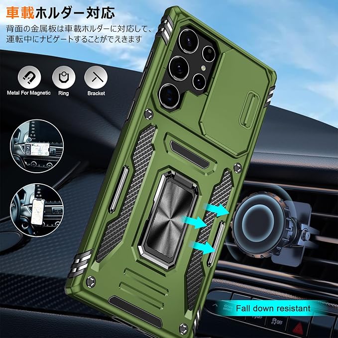 【360度回転式リング付き】360度回転可能、180角度調節可能、片手で携帯を操作でき、滑り止め、強奪、落下などのことを防げます。ケースを横置きにするとスタンド機能になり、持たず動画鑑賞などを楽しむことができます。