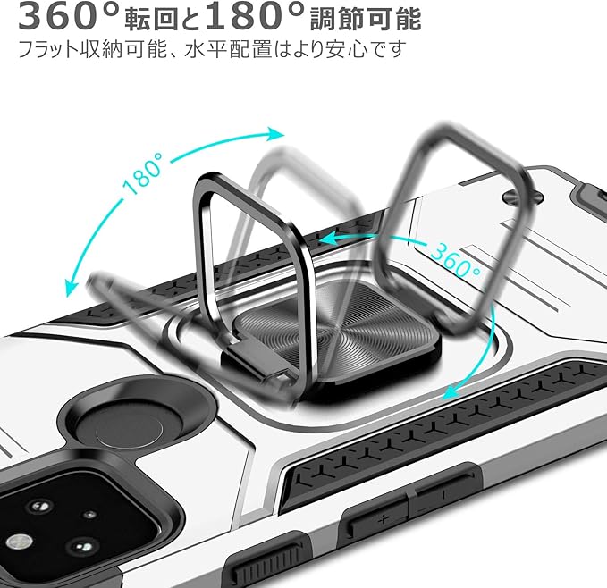 対応 Google Pixel 4a 5g 用のケース リング 衝撃吸収 耐衝撃 TPU+PCバンパー 二重構造 米軍MIL規格 全面保護カバー 滑り防止 車載ホルダー対応 擦り傷防止 滑り止め 軽量 薄型 グーグルピクセル4a 5G 用のカバー 指紋防止 耐久 おしゃれ 人気 携帯カバー 銀 MZ64-46
