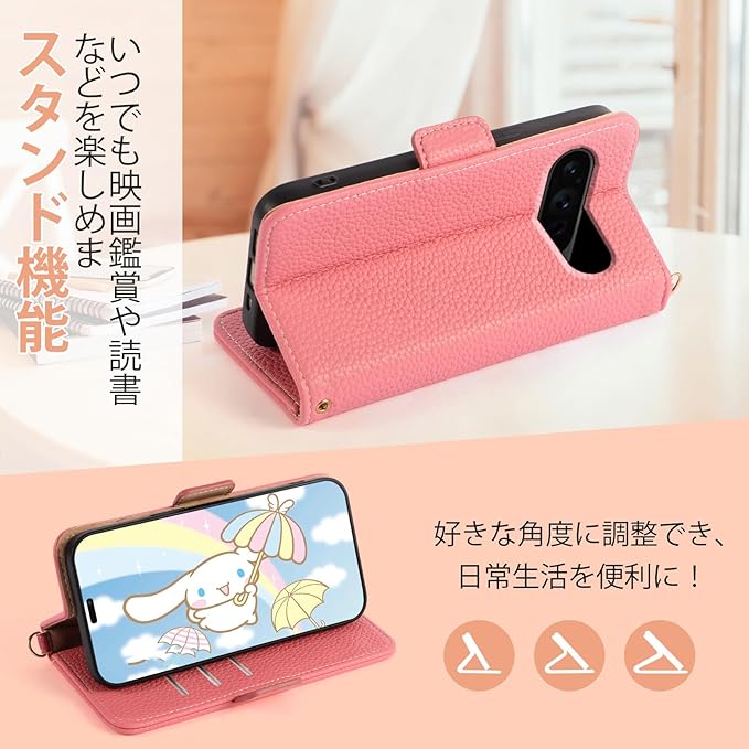 【スタンド機能】:グーグルピクセル10 ケース 手帳型 はフリップスタンド設計を採用しており、フリップを開くと「ポータブル映画鑑賞デバイス」として使用できます。横置きにすると、ぐらつきがなく安定したサポートを提供し、手を持たずに動画、ライブ配信、ビデオ通話を視聴できます。自然で快適な角度で、操作も快適です。