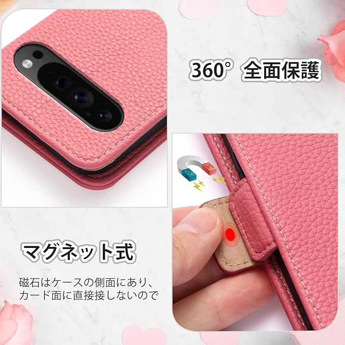 と互換性のある Google Pixel 9 ケース 手帳型 かわいい柄 とびきりキュート Google Pixel 10 ケース 手帳型 シンプルながらもスタイリッシュ Pixel9 Pro / Pixel10 Pro カバー グーグルピクセル9 手帳型ケース ピクセル10 携帯ケース 耐衝撃 全面保護 財布型 カード収納設計 美しさと実用性を兼ね備えています,ローズレッド