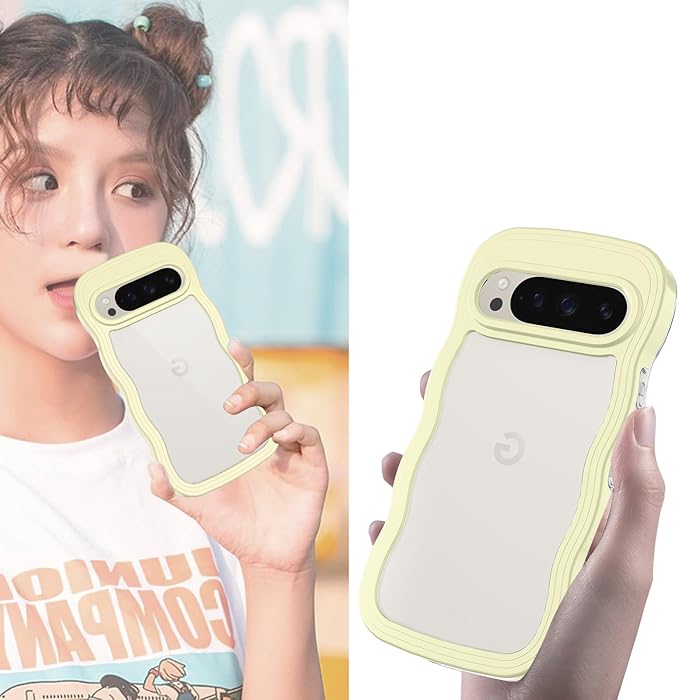 Google Pixel 10/10 Pro/9/9 Pro ケース クリア ウェーブ ピクセル 10/10 Pro/9/9 Pro TPU波状フレーム うねうね グーグル ピクセル10/10 Pro/9/9 Pro 滑り止め スマホケースウェーブ デザイン 手にフィット 韓国 可愛い 女性用 女子向け 透明 ケースカバー 人気 落下防止 耐衝撃 ストラップホール付き グーグルピクセル10/10 Pro/9/9 Pro なみなみ ワイヤレス充電対応(Google Pixel 10/10 Pro/9/9 Pro-イエロー)