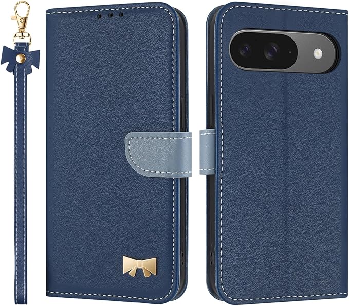 と互換性のある Google Pixel 10 ケース 手帳型 スタイリッシュでエレガント と互換性のある Google Pixel 9 ケース 手帳型 蝶結び に適合する グーグルピクセル9 カバー 柔らかく繊細な手触り 全面保護 仕上がり 用の Pixel9 pro 用の Pixel10 pro 携帯カバー カードスロット内蔵 スタンド機能,ロイヤルブルー