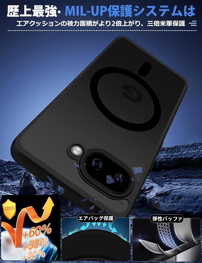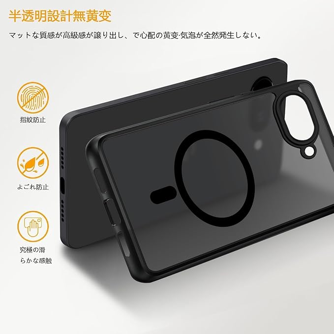 For Google Pixel 10A ケース 通用 MagSafe対応 マグセーフ ワイヤレス充電 マット ブラック マット仕上げ 半透明 マグネット搭載 TPU PC 落下防止 衝撃吸収 滑り止め 防塵 耐久性 黄ばみなし 耐衝撃 全面保護 レンズ保護 グーグル ピクセル 10 A カバー(ブラック)