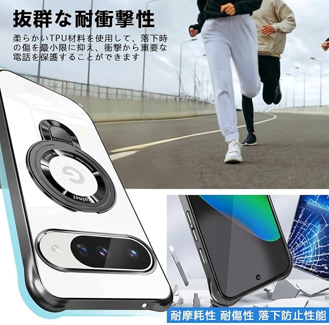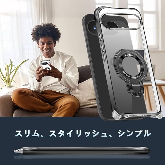 Google Pixel10 ケース クリア ショルダー 透明 グーグルピクセル10 カバー リング付き Pixel 10 Proカバー スタンド機能 マグネット搭載 耐衝撃 米軍規格 紐付き 斜めがけ 織りストラップ付き ネックストラップ ショルダー 縦/横 2WAY 長さ調整可能 取り外し可能 落下防止 紛失防止(ブラック)