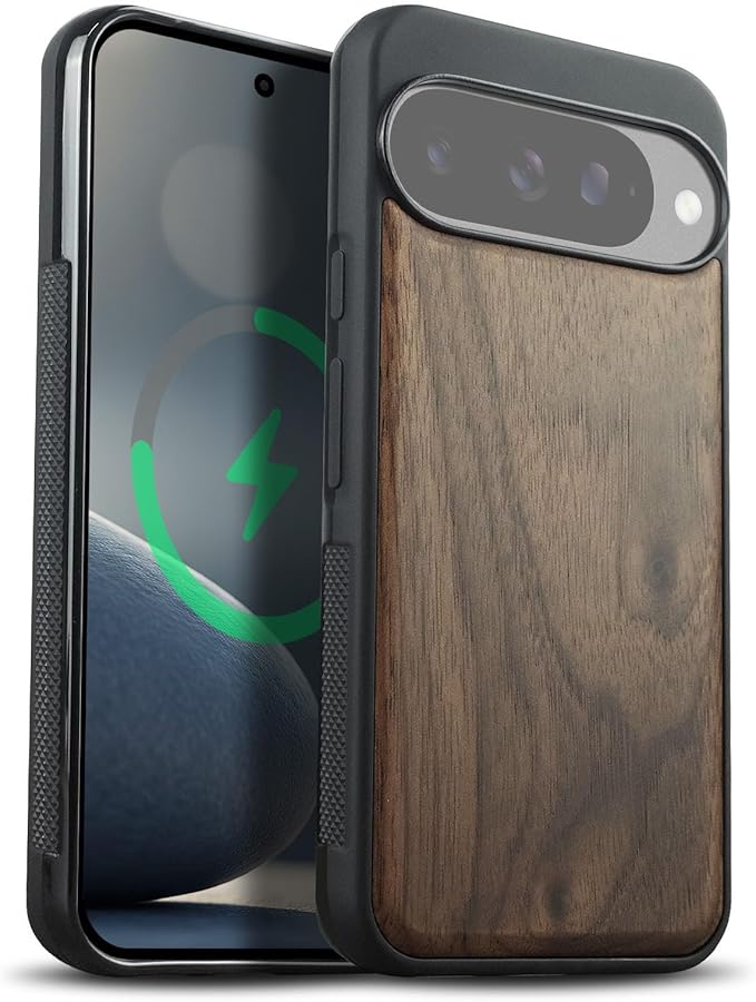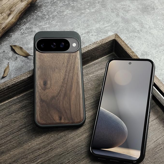 Carveit MagSafe (マグセーフ) 対応 Google Pixel 10 ケース 木製 【天然木+TPUシリコンツーインワン】 磁気内蔵 グーグルピクセル 10 ケース ウッド 耐久性 滑り止め 指紋防止 耐衝撃 Pixel 10 カバー (ウォールナット-白木スタイル)