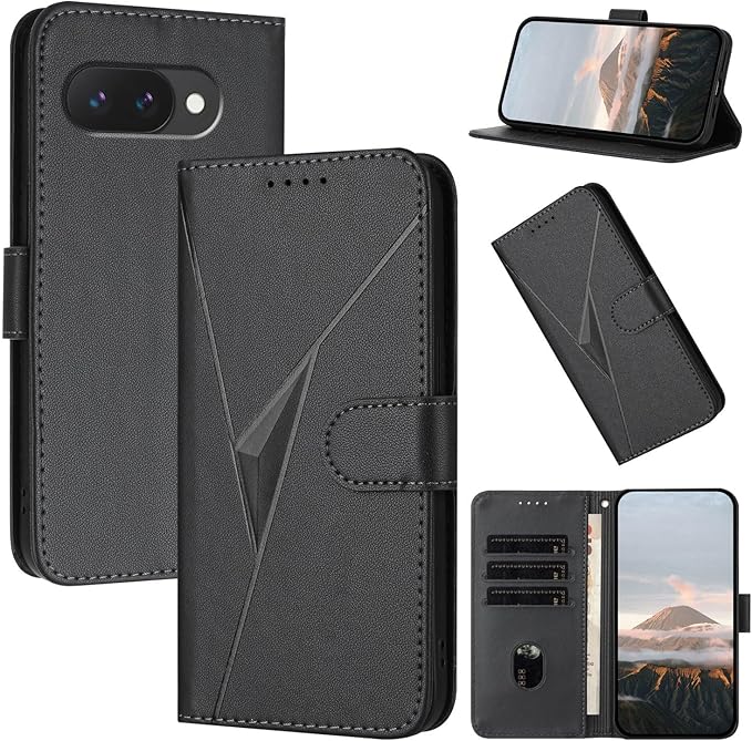 対応 Google Pixel 10A ケース 手帳型 グーグルピクセル10a ケース 手帳型 立体感のある三角模様 pixel10a カバー googlepixel10a スマホケース googleピクセル10aケース スタンド機能 カード収納 ピクセル9a 携帯カバー Pixel 10a 携帯ケース デザイン感と あふれる 耐衝撃 滑り止め指紋防止,ブラック