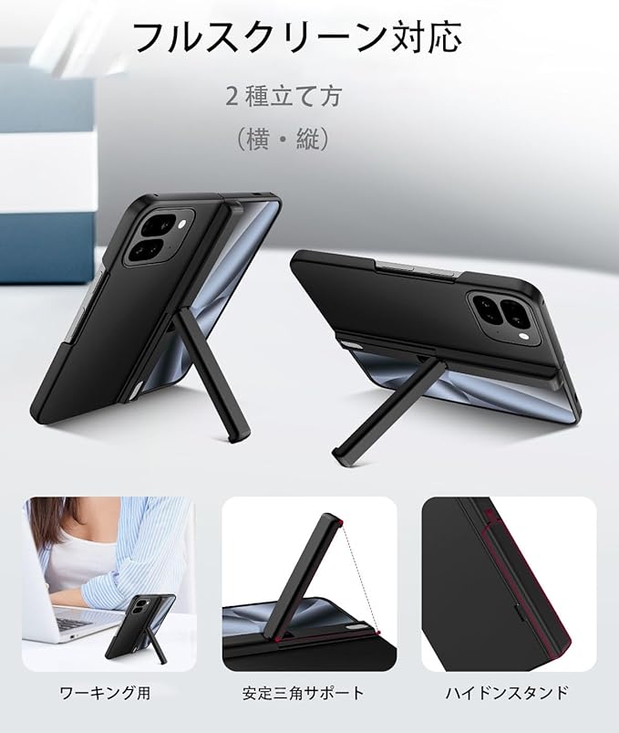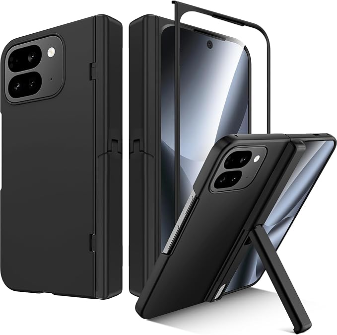 Miimall 対応 Pixel 10 Pro Fold ケース フィルム一体型 スタンド機能 ヒンジ保護 耐衝撃 衝撃保護 防塵 滑り止め 全面保護 スリム Case バンパー グーグル ピクセル10 プロ フォールド スマホカバー 携帯ケース(ブラック)