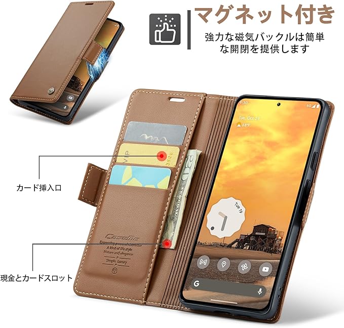 Google Pixel 10/Pixel 10 Pro ケース 手帳型 PUレザー 携帯便利 衝撃防止 擦り傷防止 全面保護 カード収納 保護カバー 財布型 磁気バックル付き タンド機能付き グーグルピクセル 対応 携帯 カバー Google Pixel 10 Pro/10 用 手帳型ケース ブラウン