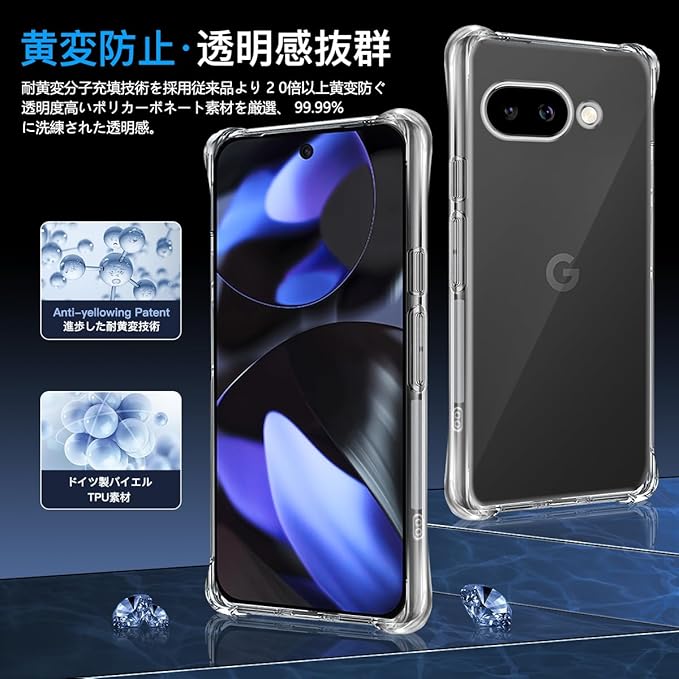 【透明感抜群 黄変防止】 環境に優しく、無毒無味の高品質素材採用して抗酸化処理が施されており、何年も黄変することはありません。また、超精度の透光分子を持ち、背面の光透過率は99%に達した、Google Pixel 10a 本来の美しいデザインとカラーをそのままに楽しめます。