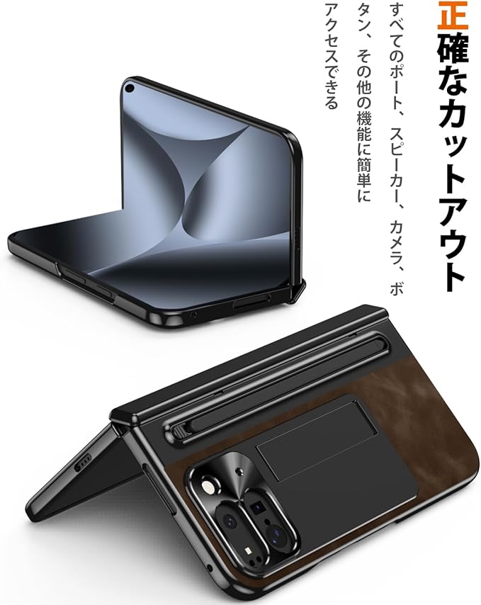 NINKI コンパチブル Google Pixel 10 Pro Fold 交換用ケース タッチペン付き ペンスロット ヒンジ保護 キックスタンド内蔵 折り畳み式 PC+レザー製 スクリーンフィルム一体型 スタンド機能 スクラッチ防止 グーグル ピクセル 10プロ フォールド 5G 用カバー(ダークブラウン)