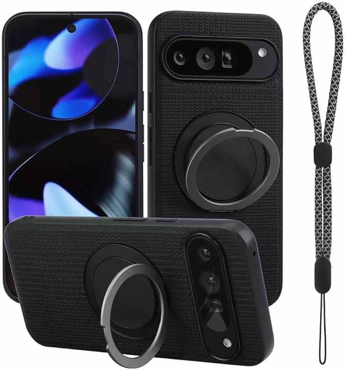 【ViLi D-THS】 Google Pixel 10 / 10Pro 対応 360度回転式スタンド・マグネットリング ストラップ付きケース 黒 CPIX10-D-THS-BK
