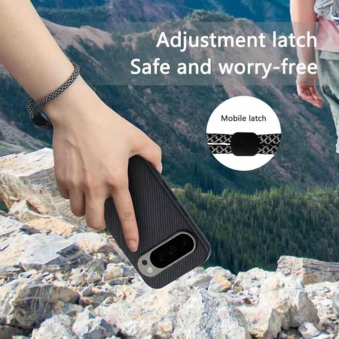調節可能留め具付きストラップあり。