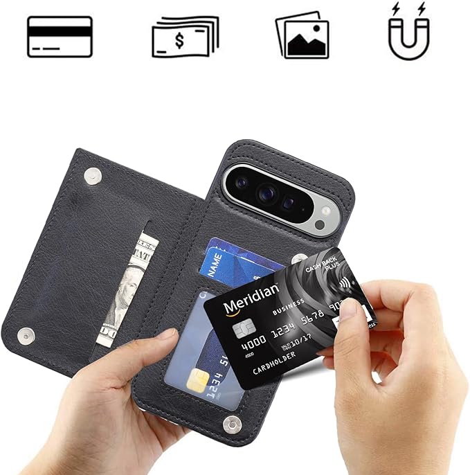 【Viesa】背面カード 手帳型ケース 互換性 Pixel 10/10 Pro 対応 Google スマホ バックカバー ケース 手帳型 (ブラック) 財布型 背面カバー きスタンド機能 背面型ケース 適用 ピクセル10 ピクセル10プロ グーグルpixel10pro BLACK