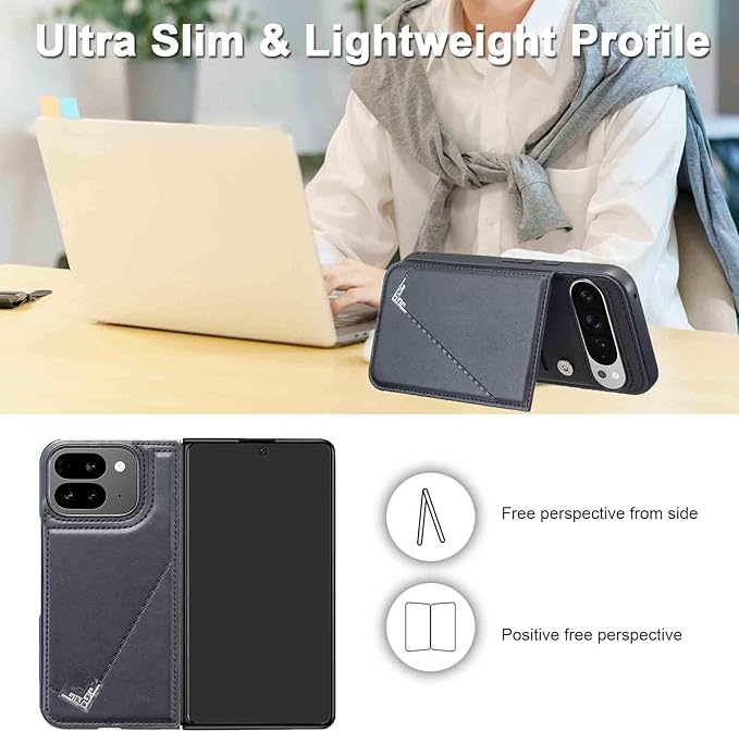 【Viesa】背面カバー ケース手帳型 互換性 Pixel 10 Pro Fold 対応 GOOGLE ランヤード付 背面型ケース(ブラック) 美しい、軽 薄 持ちやすい、滑り止め、すり傷防止マグネット 横置きスタンド機能 財布型 スマホバックカバー ピクセ10プロ フォールド グーグルPixel10profold BLACK