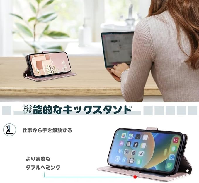 【高品質素材及び設計】大切なスマホを守る安心の手帳型。内部は衝撃吸収性に優れたTPU素材を採用して、落下時の衝撃を効率よく吸収するようにケース の各コーナー内側が設計されています。手触りが良く、キルティングの設計は控えめでエレガントです。