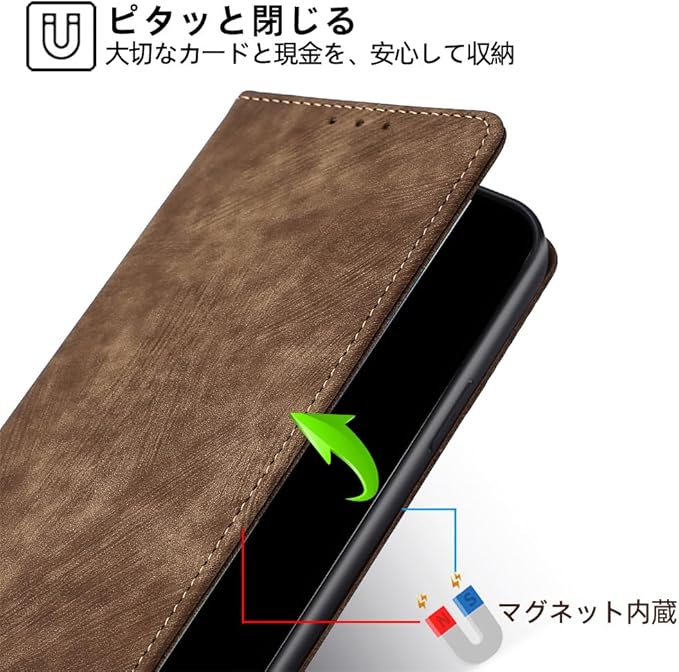 AiMaooのレザーケースは高品質のPUアウターシェルとTPUインナーシェルで作られ、スマホを引っかき傷や衝撃から効果的に保護します。2つのカードスロットと1つのサイドポケットが装備されており、側面に強力な磁気吸引力があり、落下した場合に携帯電話を最大限に保護します。この素材は環境に優しく、安全で無毒です。この保護手帳型ケースは、ユーザー様のスマホを完全に保護します