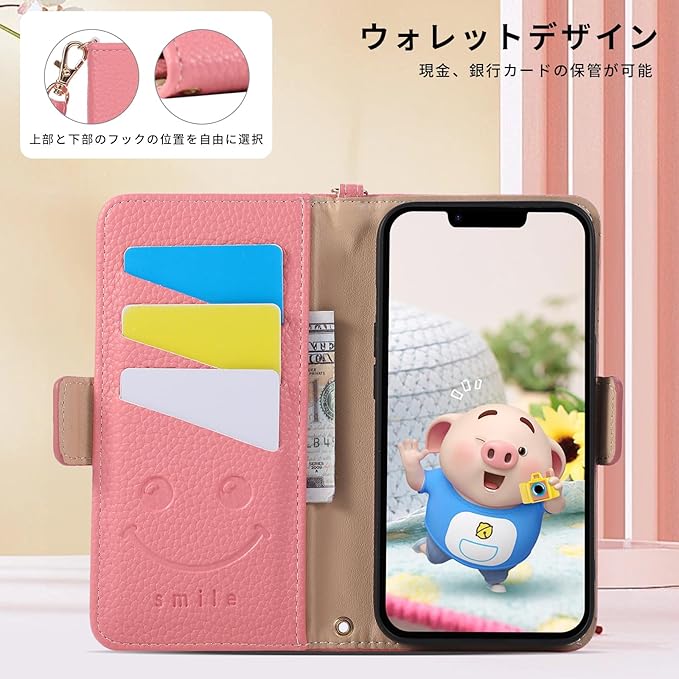 【高品質の素材・巧妙なデザイン】キュートなブタのキャラクターデザインに、上質なレザーを使用した快適な使い心地。PUとソフトTPUのアウターシェルは、厳選されたレザーと巧みに融合し、キュートでフレッシュな見た目と、まるで肌のような上質な感触を実現しています。アウターシェルは、長時間使用したり、汗をかいたりしても、本来の香りを保ちます。インナーシェルには、キュートで遊び心のある笑顔が描かれています。