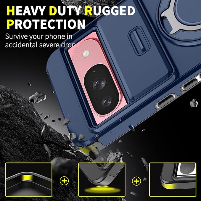Anlalish携帯ケース 適用する Google Pixel 10 ケース 持っているカメラ保護 耐衝撃 Google Pixel 10 スマホカバー リング人 気 オシャレ車載ホルダー 対応 スライド 保護 カード (青)