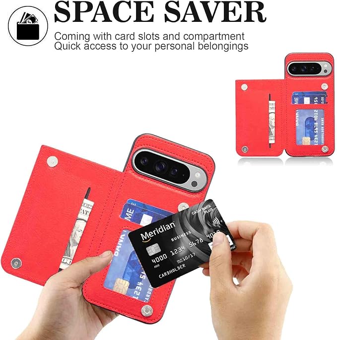 【Geshh】Pixel 10/10 Pro 対応 財布型ケース カード収納 左右開 薄型軽量 耐久性 カバー(レッド)背面ケース スタンド機能 手触りが良い 上質 スキミング防止 手帳型ケース 適用 グーグル ピクセル10 pixel 10/10 pro 赤色