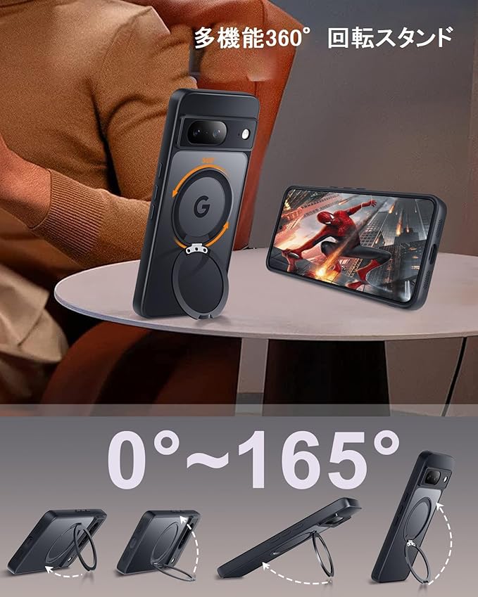 【360 回転スタンド】Google Pixel 7A ケースMagSafe対応 グーグル ピクセル7A ケース マグネット搭載 スタンド機能360 回転可能【横縦両立/角度自由調整】 カバー 純正 薄型 マット感 指紋防止 耐衝撃 落下防止 車載ホルダー対応 ワイヤレス充電 全面保護(ピクセル7Aブラック)