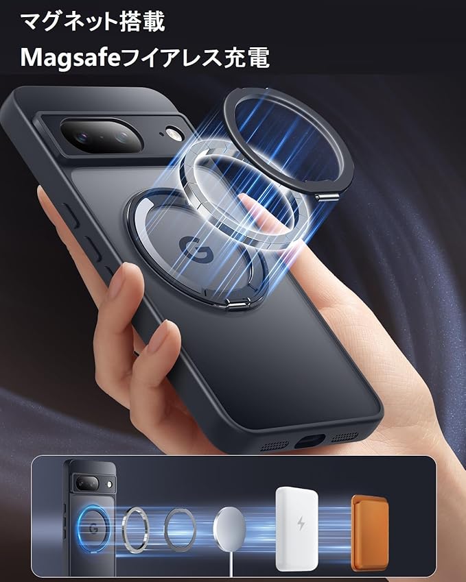【MagSafe対応】Google Pixel 7A ケースの全身マット感のマットデザイ+バックパネル部内蔵金属ニッケルチップを採用しています。マット感のマットなデザインで、スマホに装着した瞬間、高級感と神秘感を隠せません。また、背板部付属ケースの場合も高い吸着力に対応し、強固で安定した充電能力を実現します。