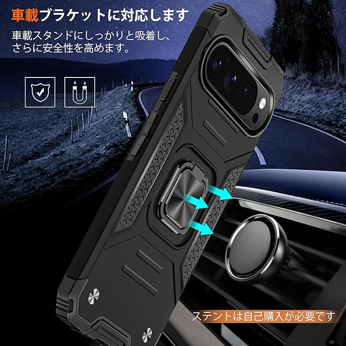 対応 Google Pixel 10 Pro XL 用ケース リング 耐衝撃 落下防止 スタンド機能 PC+TPU二重構造 防塵 薄型 軽量 一体型 360度回転 変形防止 ピクセル 10 プロ XL カバー 黒 MJJ-1051-77-01